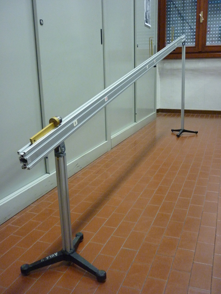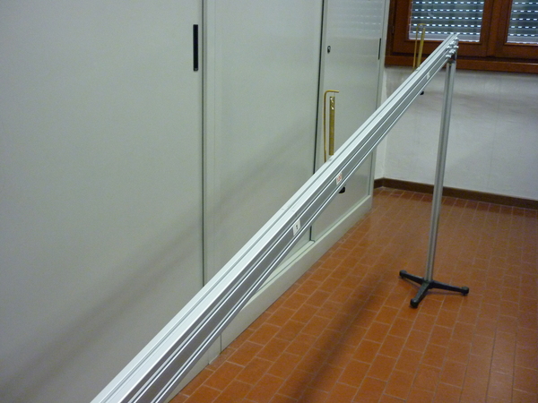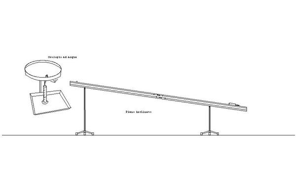 1. Misurare la lunghezza del piano e il dislivello totale. Tre persone eseguano tre volte a turno la misura del tempo che la sfera impiega a percorrere i primi 2 metri, usando contemporaneamente il cronometro e l'orologio ad acqua.