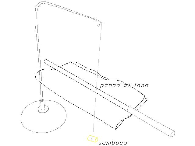Si strofina con un panno di lana una bacchetta di plexiglas e la si avvicina a una pallina di midollo di sambuco sospesa con un filo isolante, osservando cosa succede.