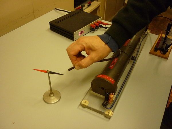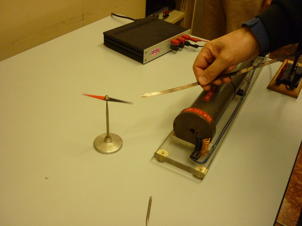 Un nastro di acciaio flessibile viene magnetizzato con l'ausilio di un solenoide. Si avvicina a turno ciascuna estremità del nastro a un ago magnetico e si osserva cosa succede. Si piega poi il nastro facendone combaciare le due estremità e avvicinandole insieme all'ago magnetico.