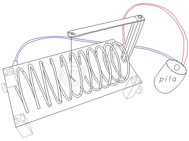 Quando il solenoide viene percorso dalla corrente, l’astina di ferro si posiziona parallelamente all'asse del solenoide, evidenziando così la direzione delle linee di campo magnetico
