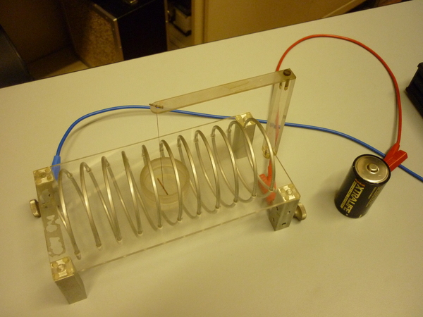 All'interno di un solenoide si sospende un'astina di ferro tramite un filo di seta. Si collega poi il solenoide a un generatore di corrente e si osserva il comportamento dell'astina.