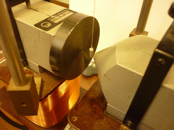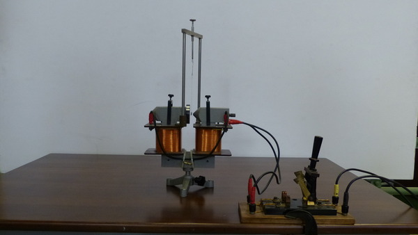 Un cilindretto di alluminio viene sospeso all’interno del campo magnetico generato da un elettromagnete con un'espansione polare piana e l’altra a punta. . L'elettromagnete viene alimentato e si osserva cosa accade al cilindretto di alluminio. Successivamente si sostituisce il cilindretto di alluminio con uno di bismuto e si osserva cosa succede in questo caso.