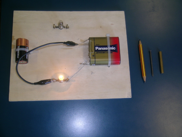 3. Provare a chiudere il circuito con diversi materiali. Con alcuni la lampadina si accende, con altri no.