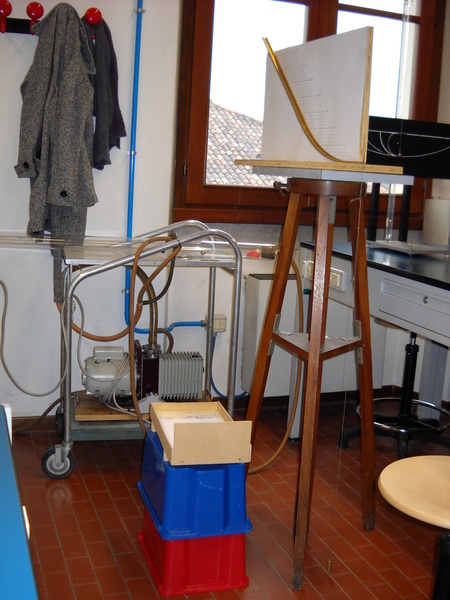 Materiali occorrenti: 1 scivolo; 1 tavolino; 1 cassetta; carta carbone; filo a piombo; carta millimetrata.