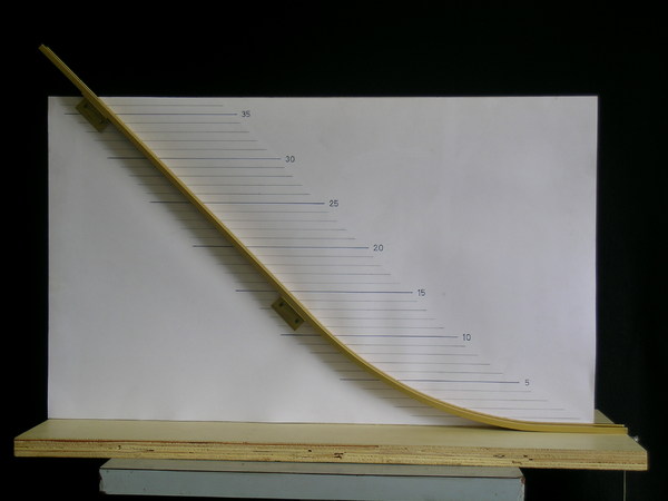 Si lasci cadere la pallina dal punto più alto dello scivolo facendo variare l'altezza dello sgabello su cui è poggiata la tavola di legno.