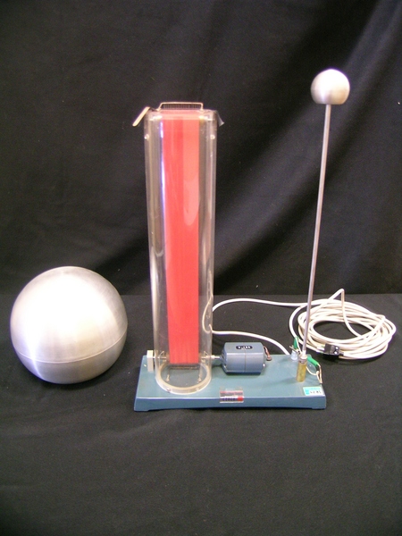 La macchina di Van de Graaf è una macchina elettrostatica in grado di accumulare carica elettrica su un conduttore sferico. E’ composta da una cinghia di materiale isolante tesa tra due pulegge e mantenuta in rotazione da un motore. La cinghia viene caricata per induzione da una serie di punte metalliche collegate a potenziale di terra e poste in prossimità di una delle due pulegge. Queste cariche vengono poi trasportate dalla cinghia e sono raccolte da un secondo pettine metallico collegato alla sfera metallica.