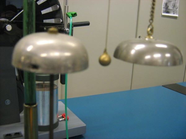 Collegando a terra il campanello centrale ed ad una macchina elettrostatica quelli laterali, le due palline vengono caricate per induzione ed attratte da questi ultimi e poi respinte verso il campanello centrale perché si caricano dello stesso segno. A contatto col campanello centrale si scaricano e si ripete il ciclo.