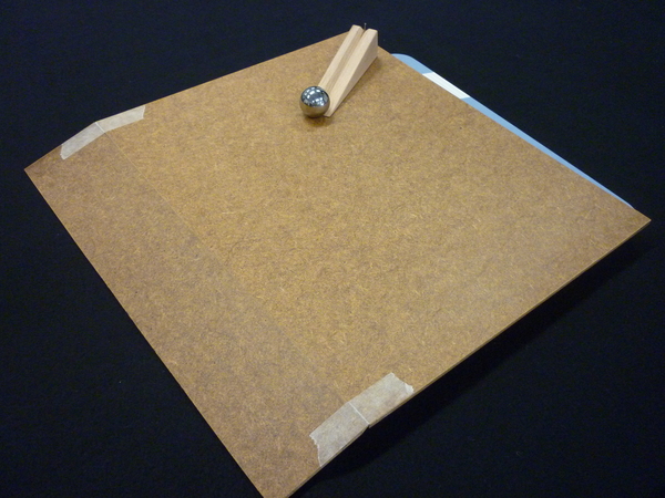 Quando si fa scendere la pallina dal primo piano orizzontale al secondo, si notano sui fogli dei rispettivi piani due linee con diversa direzione. Tracciando la normale con queste linee si verifica il fenomeno per cui due angoli vengono ad avere la stessa ampiezza. Questo avviene grazie al breve piano inclinato situato tra i due piani orizzontali. Il piano inclinato infatti fa aumentare la velocità della pallina, facendole cambiare direzione. In questo modo riusciamo a simulare il passaggio della luce tra i due mezzi di densità diversa. Infatti nel passare da un mezzo all'altro la luce cambia anche di direzione, cioè in quel punto il suo percorso presenta una deviazione brusca. Il cambiamento di direzione della luce in corrispondenza del limite di separazione tra i due mezzi di densità ottica diversa viene detto rifrazione della luce.