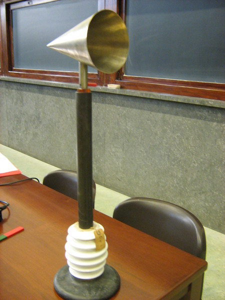 Si carica un cono metallico cavo e, con un cucchiaio di prova, si prelevano in punti differenti del cono delle cariche e le si analizza con l'elettroscopio.