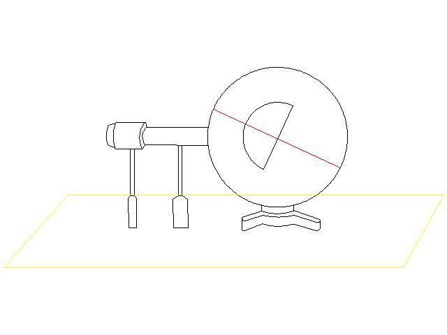 Una lente semicilindrica (indice di rifrazione n=1.5) è fissata a un disco graduato in modo che il centro della lente coincida con il centro del disco. Un raggio laser viene proiettato radente il disco in direzione della parte curva della lente e verso il centro della lente. Si ruota la lente e si studia la relazione tra angolo di incidenza e angolo di rifrazione nel passaggio del raggio laser dalla lente all’aria.