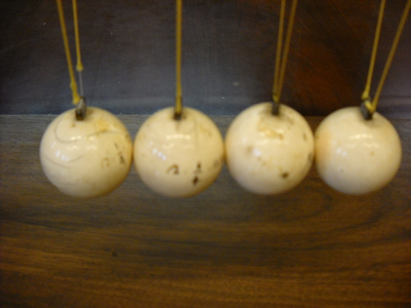 Quando si lascia cadere una sferetta si osserva che alla fine della caduta questa si ferma contro le sferette a risposo e si mette in moto la sferetta situata dalla parte opposta con la stessa velocità che la prima sferetta possedeva prima dell’urto. Le sferette intermedie, invece, non si muovono. Se si lasciano cadere due sferette, si mettono in moto le due situate all'estremità opposta, e così via. Il comportamento osservato può essere spiegato applicando i principi di conservazione della quantità di moto e dell’energia.