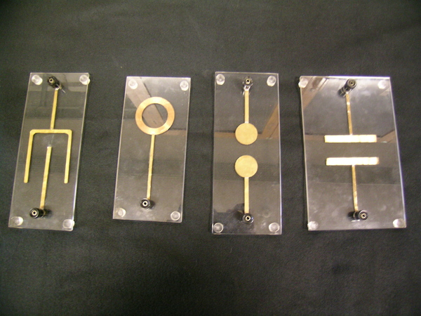 Delle lamine conduttrici sagomate in varie forme sono incollate sopra lastre di vetro e collegate a un generatore di tensione. Si dispone sopra alle lastre un contenitore piatto di vetro contenente un liquido in cui del semolino colorato in sospensione è libero di muoversi. Per le osservazioni, si pongono le lastre sopra un proiettore.
