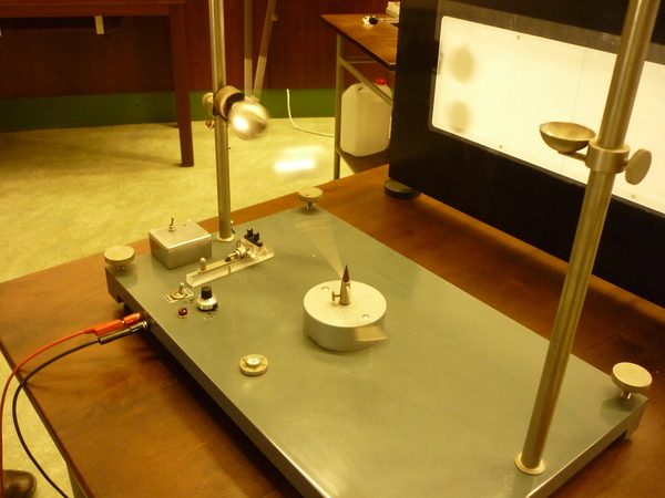 Ad un perno, che può essere messo in rotazione, viene ancorata un'asta metallica alla cui estremità è posta una sfera. In coincidenza con l’asse di rotazione del perno, viene sospeso un pendolo a cui è appesa una sfera di diametro identico alla prima. Il periodo di rotazione del perno viene regolato in modo che coincida con il periodo di oscillazione del pendolo. Uno schermo traslucido viene posto davanti all’apparato e una lampada viene accesa dietro di esso in modo che si veda solo l’ombra delle due sferette quando l’apparato viene posto in movimento. Dopo aver osservato il moto dell’ombra proiettata dalle due sferette, si osserva il moto reale del sistema senza lo schermo.